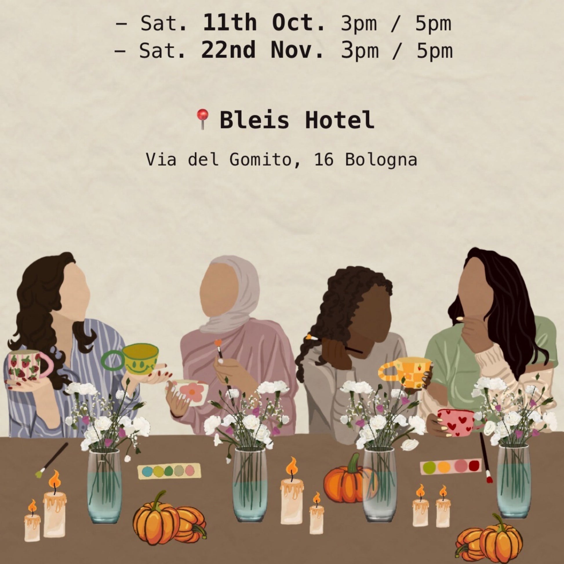 Decorerai il tuo pezzo fatto a mano da Soyaria, puoi scegliere di venire da sola o con amiche, in caso siate un gruppo si consiglia di avvisare per avere i posti vicino. Potrai scegliere se dipingere la tua tazza, oppure un piatto.