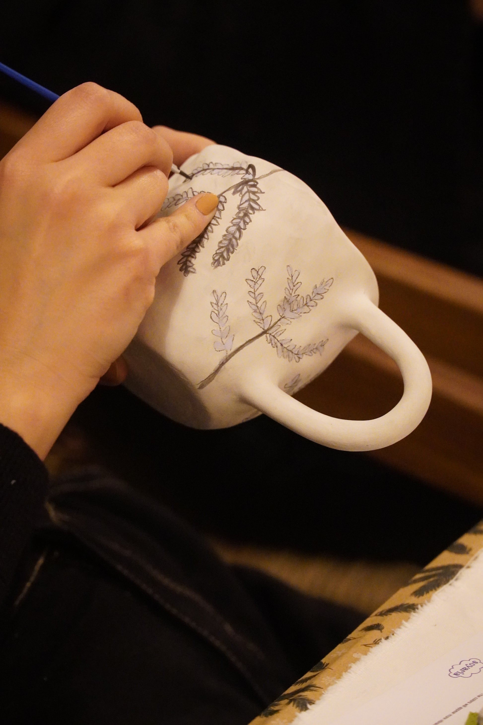 It's a ceramic painting workshop, you will paint a bisque fired piece created by Soyaria with the unique technique of pinching.