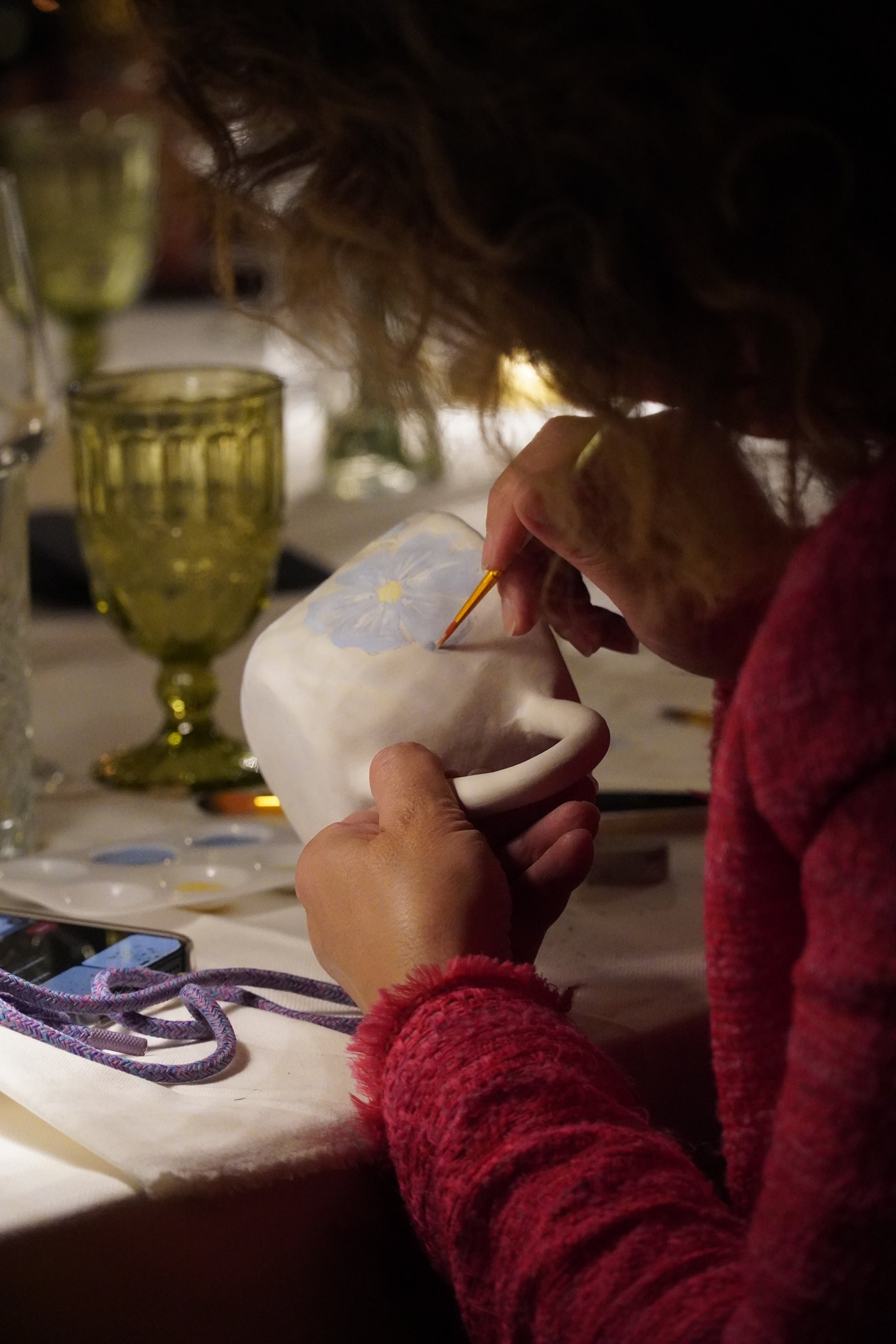 It's a ceramic painting workshop, you will paint a bisque fired piece created by Soyaria with the unique technique of pinching.