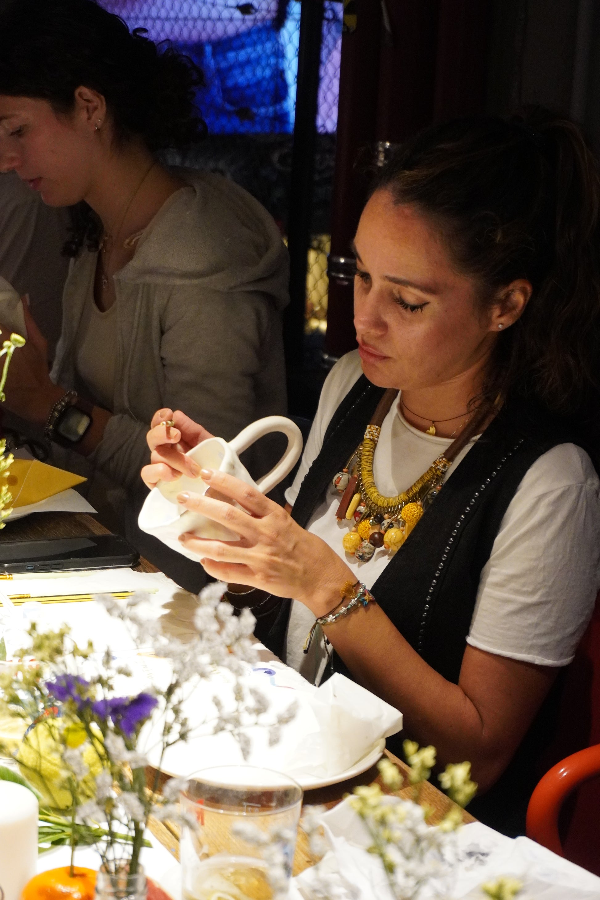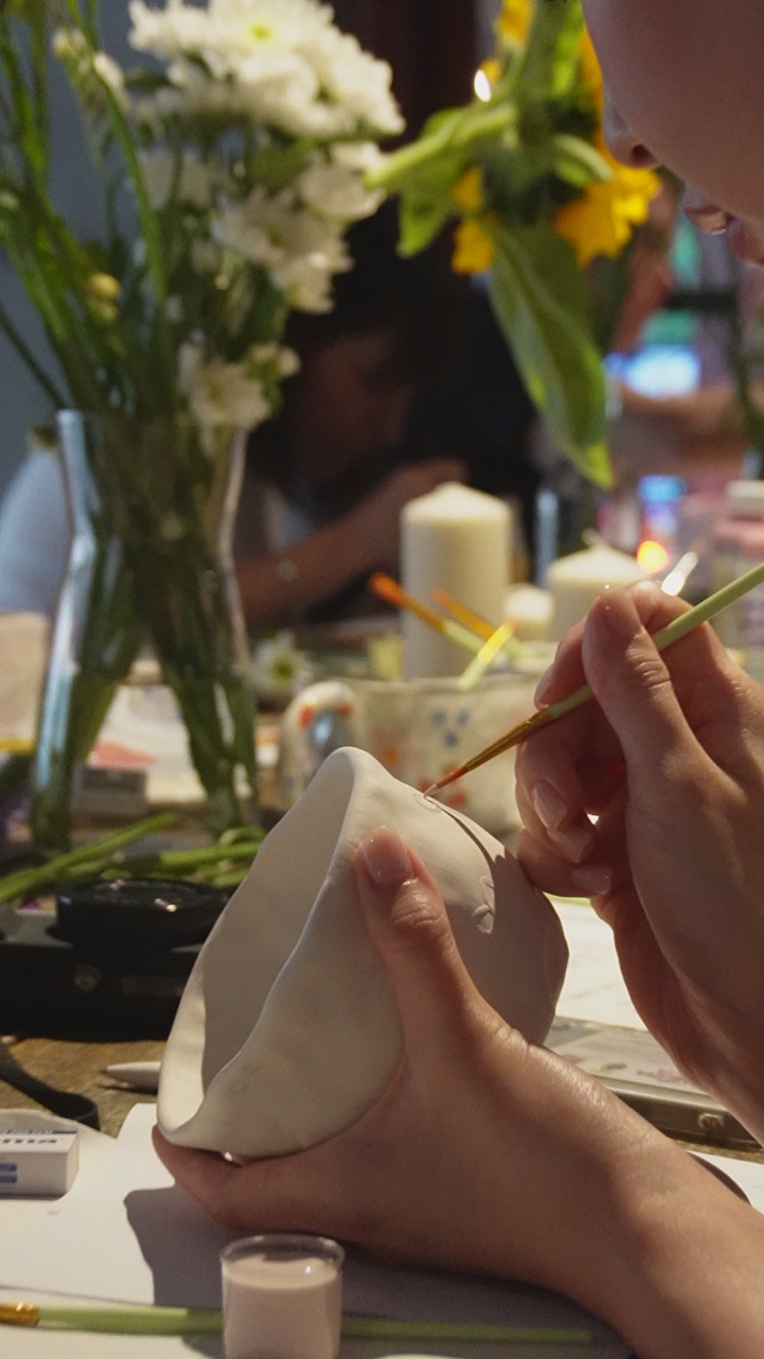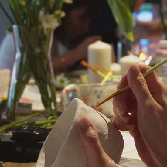 It's a ceramic painting workshop, you will paint a bisque fired piece created by Soyaria with the unique technique of pinching.